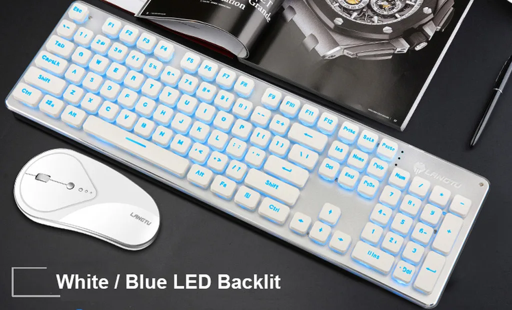 2.4G Wireless Rechargeable LED Backlit Usb Ergonomic Gaming Keyboard Mouse Sets